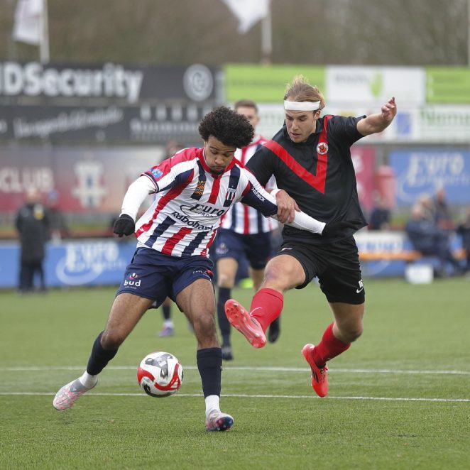 De volgende bekerronde? ,,We gaan de wedstrijd tegen FC Utrecht ook echt beleven als een prachtig toetje van de eerste seizoenshelft, waarin we 35 punten in de Tweede divisie hebben gepakt. Het kan een heel mooie avond worden, we gaan zeker onze huid duur verkopen. Maar vergeet niet, het is wel de nummer twee van de Eredivisie waar we over praten. Het kan ook ‘goed’ fout gaan.” Een stunt? “Dat zou helemaal geweldig zijn!” Kijk hier voor alle uitslagen, de stand en het programma in de Tweede divisie