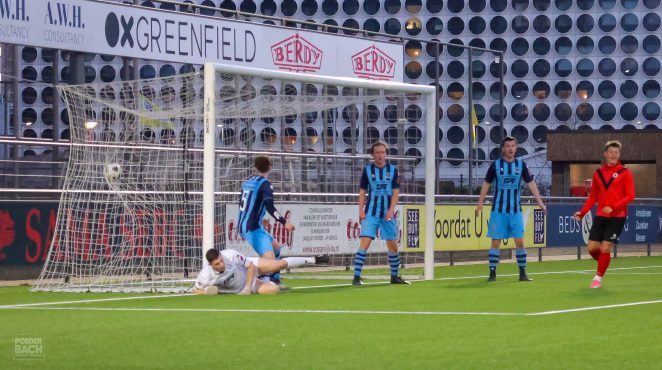 De Amsterdammers waren vooral gevaarlijk uit hoekschoppen en wisten daardoor na een kwartier op voorsprong te komen. Het was Sam Nijpels die de 1-0 achter doelman Justin van Look kopte. Daarmee was de ruststand bereikt.