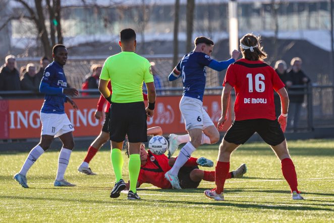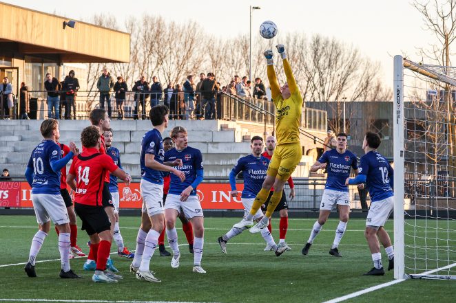 In een niet al te beste wedstrijd met weinig echte kansen heeft AFC tegen De Treffers een mooie mogelijkheid laten liggen om dichter bij de koplopers te komen. Op sportpark Goed Genoeg zat het venijn aan het begin én het eind van de wedstrijd. Al na één minuut stonden de gasten uit Groesbeek met 0-1 voor na een blunder van de AFC keeper. Hoewel AFC het meeste balbezit had en beter combineerde, lukte het lange tijd niet de solide verdediging van De Treffers te ontmantelen. Na een rode kaart voor de rood-zwarten was dat in het laatste kwartier wél het geval en werd het doel van De Treffers belegerd. Meer dan een gelijkmaker van Splinter de Mooij leverde dit offensief niet op. De trots van Groesbeek hield met veel kunst- en vliegwerk het hoofd net boven water.