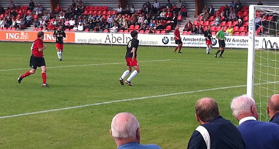 AFC – Hollandia was een leuke wedstrijd om naar te kijken. Gelijk in de eerste minuut kreeg ex- AFC spits Patrick Krop een grote kans op 0-1 voor Hollandia, maar hij miste. Toen begon AFC goed te draaien. In de 6e minuut tekende Sjoerd Jens voor zijn 1e doelpunt van de middag. Jens kwam een tegen een met de keeper na mistasten van Jordy Piek en liet Wencho Farrell kansloos op zijn schuiver. Met de voorsprong in de zak nam AFC weer iets gas terug en liet Hollandia de bal. Na een mooie passeeractie van Dave Ninteman op de achterlijn kon Patrick Krop gemakkelijk de 1-1 binnenschuiven.