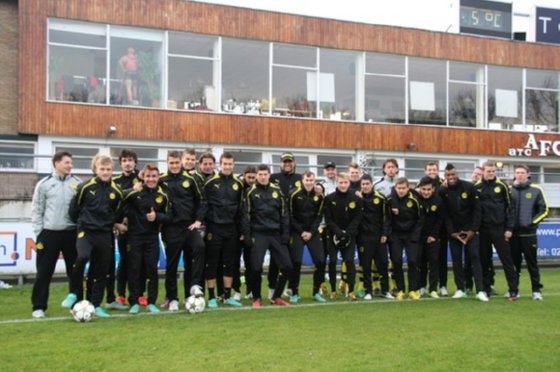 Afgelopen woensdag, de dag van de wedstrijd Ajax-Borrusia Dortmund, was AFC gastheer van de Duitse kampioen. In het geheim werkte de ploeg van Juren Klopp een lichte training af op het hoofdveld van AFC. De club mocht er geen ruchtbaarheid aan geven maar de huisfotograaf van AFC legde de selctie wel even vast op de gevoelige plaat. Gezien het resultaat later die avond lijkt het veld van AFC zijn vruchten te hebben afgeworpen. Het gebeurt wel vaker dat tegenstanders van Ajax of nationale teams gebruik maken van de velden bij clubs uit onze regio. Onlangs was het nationale elftal van Duitsland te gast bij RAP.