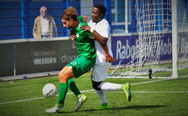 Halverwege keek AFC nog tegen een 0-1 achterstand aan door een doelpunt van Tim van Soest. “Zij speelden erg behoudend, met vijf verdedigers, waardoor wij het dus moesten openbreken”, zag Landvreugd. Na rust kwamen de Amsterdammers door een benutte strafschop van Jonathan Richard op gelijke hoogte. Raily Ignacio, hersteld van een operatie aan zijn hand, maakte de comeback compleet door met een stift vanuit een onmogelijke hoek de zege veilig te stellen: 2-1.