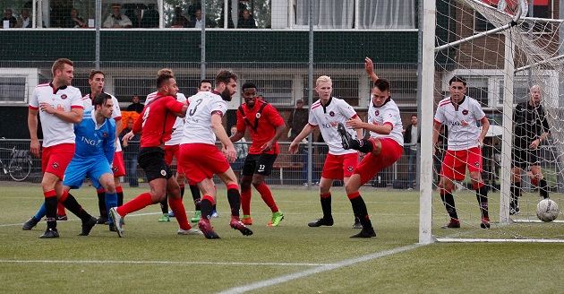AFC had het even moeilijk maar tien minuten voor rust kwamen de Amsterdammers goed combinerend door de verdediging van ARC heen, alleen was de inzet van Jermain Cikic te slap. Jeroen Borsboom aan de andere kant uit een lastige hoek de buitenkant van de paal. De laatste wapenfeiten voor rust waren van de thuisploeg. Gijs Niehe vergat in kansrijke positie het overzicht te behouden en een voorzet van Mauritsio Helstone werd ternauwernood onderschept.