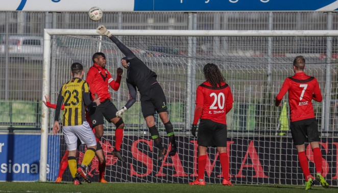 Na de rust was het iets beter, maar nog steeds niet om over naar huis te schrijven. De 2-0 was typerend voor het duel. Een lage voorzet van Teijsse werd door Rijnsburgse Boys-verdediger Masies Artien ongelukkig in het eigen doel gelopen. “Een goal en een schijtassist, maar ik teken ervoor”, glimlachte hij. Als Raily Ignacio (voor leeg doel over) en Yordi Teijsse (gekeerd door doelman Richard van Nieuwkoop) hun vizier beter hadden afgesteld, hadden de Rijnsburgers zelfs op een grotere nederlaag getrakteerd kunnen worden. Dat zou overigens teveel van het goede zijn geweest.
