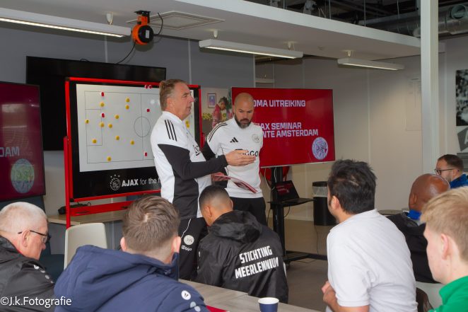 Een grote groep trainers van diverse voetbalverenigingen in de stad heeft deze week een trainerscursus gevolgd van Ajax. Het idee is opgezet door de gemeente Amsterdam en Ajax om de voetbalverenigingen een steuntje in de rug te geven, en Ajax profiteert er zelf ook van. Ajax scout graag in Amsterdam en met deze cursussen worden de amateurtrainers beter, en daardoor ook de spelers.