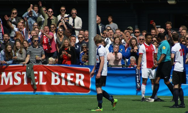 Ajax probeerde zelfs met een man minder alsnog het spel te maken, maar de betere kansen waren voor de nummer acht van de zondag Hoofdklasse A. Ajax-keeper Jan Ziere redde goed op een schot van Visser en de ingevallen Tim de Jong haalde de inzet van Spanjerberg van de doellijn. Halverwege de tweede helft was het alsnog raak. Rick van der Velden mocht onbedreigd uithalen en zijn diagonale schot liet de aan de grond genagelde Ziere kansloos: 1-0.