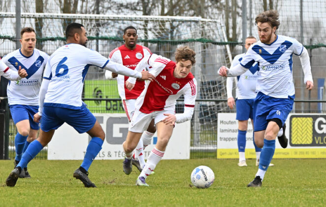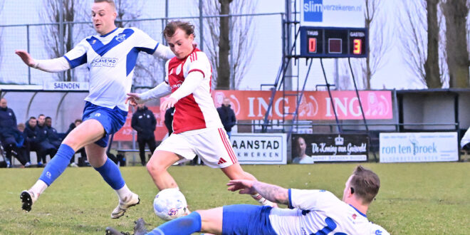 Eigenlijk was het Jordi Wigman namens Saenden die halverwege het startsein gaf om de wedstrijd nóg energieker aan te pakken. De spits zag Jesper van der Mark iets te ver voor zijn doel staan, maar ternauwernood kon de ervaren doelman de bal op het laatste moment nog over tikken. Vanaf dat moment denderde Ajax over Saenden heen en binnen een tijdsbestek van negen minuten stond het opeens 0-4.