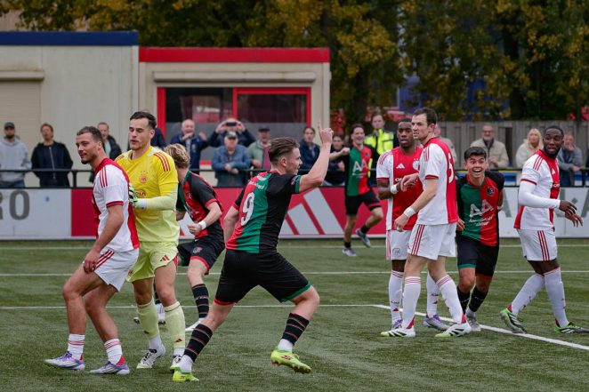 Het eindsignaal klonk voor Ajax als een opluchting na een wedstrijd die in de tweede helft alle kanten op vloog, ondanks dat de ploeg eerder op 3-1 had gestaan. Op het veld geen winnaar, maar langs de lijn zeker wel. Kijk hier voor alle uitslagen, de stand en het programma in de Vierde divisie A