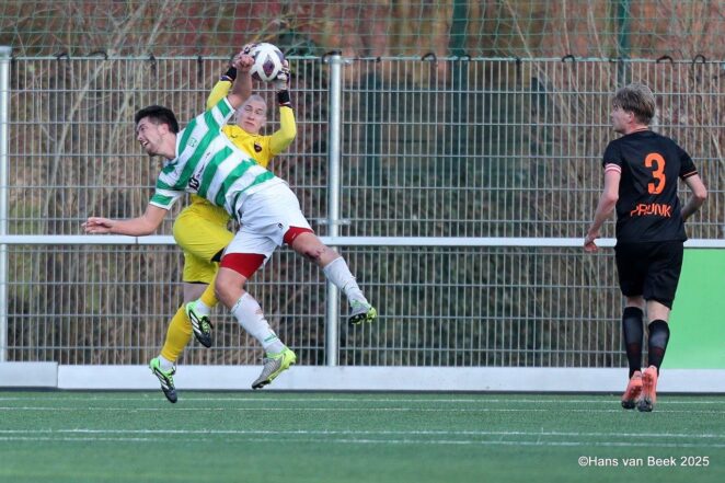 Die gelijkmaker kwam er bijna. Delano Paskal legde de bal van achteruit perfect achter de verdediging van Jong Holland. Van den Steenhoven controleerde, speelde Sietse Bol uit, maar zijn inzet stuitte op de prima keepende De Jong, die daarmee de gelijkmaker voorkwam. De 2-3 bleek uiteindelijk de eindstand.