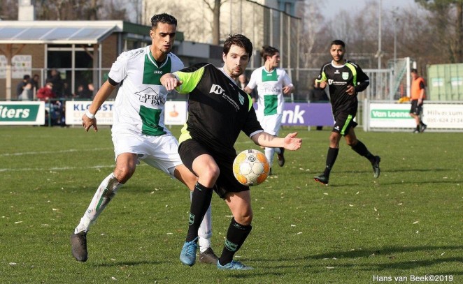 Aan de andere kant van het veld had Michael Coster de 0-1 op zijn schoen, maar zijn inzet ging naast. Na bijna een half uur spelen kreeg Amstelveen zijn voorsprong. Op aangeven van Reshad Haidari zette Toby Correia zijn tegenstander op het verkeerde been en liet met een schuiver Giordano van der Pol (ex-Ajax) kansloos: 0-1. Hierna controleerde Amstelveen het duel, totdat Coster geblesseerd uitviel. Daarmee verloren de bezoekers hun creativiteit en gaf het Hilversum de controle over de wedstrijd.
