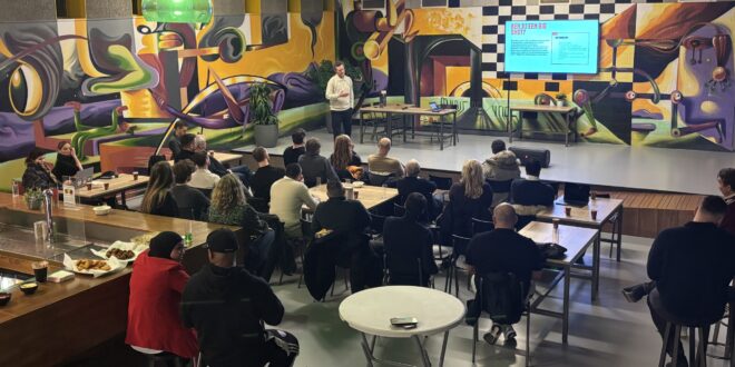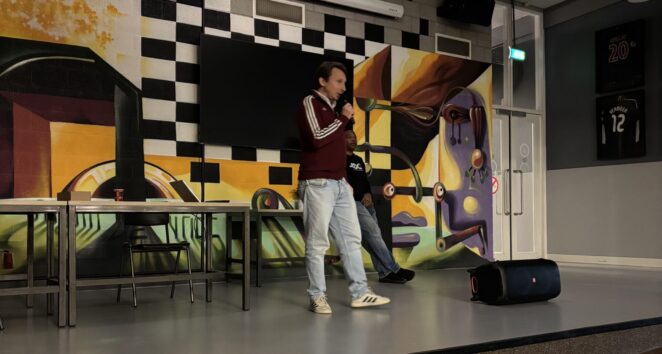 Om klokslag zeven uur opent Julius Egan, spreekstalmeester van de avond en één van de vele betrokken medewerkers van de Amsterdamse Voetbalagenda. Met een ontspannen toon praat hij de zaal door het programma heen. “Mooi dat jullie er allemaal zijn. Dit is precies waar voetbal om draait: samenkomen, delen, vooruitkijken.” Ook de voorzitter van Zuid Oost United, Donovan Hooghart, heet iedereen van harte welkom in hartje Amsterdam-Bijlmer.