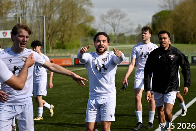 Ondanks de stunt blijft AMVJ realistisch. De ploeg staat nu op gelijke hoogte met concurrent Schoten en heeft nog alles om voor te spelen. “Het is ‘leuk’ voor het verhaal dat je het titelfeest van Zwanenburg verpest, maar het belangrijkste is dat je zelf drie punten pakt,” benadrukte Van Hees. “We hebben nog twee finales te spelen, dus het is nog veel te vroeg om achterover te leunen.” Voor Zwanenburg rest de opdracht om de teleurstelling snel te verwerken. Met nog twee wedstrijden te gaan heeft het team van Snijders nog altijd alles in eigen hand om de titel binnen te halen. Maar dat het kampioenschap niet vanzelf komt, is na deze pijnlijke nederlaag pijnlijk duidelijk geworden. Kijk hier voor alle uitslagen, de stand en het programma in zaterdag 4B