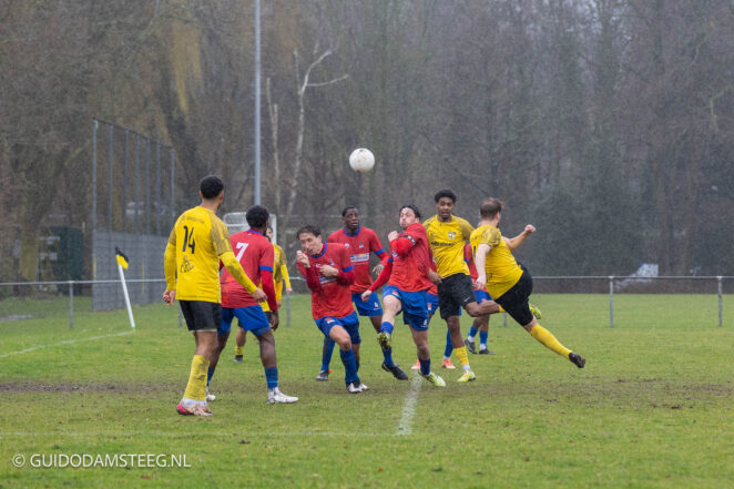 DVVA opende al vroeg de score. Een prachtige voorzet van Kiet Scholten werd bekroond tot een doelpunt door Giandro Kapel, die hem alleen nog een tikje hoefde te geven. DVVA zette na dat doelpunt aan, maar de 2-0 bleef uit. JOS begon beter in de wedstrijd te komen en raakte de paal, maar een doelpunt viel niet. Totdat Jurre Duijn vijf minuten voor rust met een handige volley binnen de zestien zijn ploeg JOS op gelijke hoogte bracht.