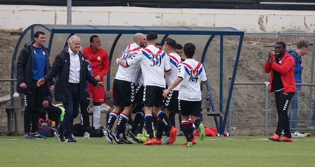 Halverwege de wedstrijd hadden de Amsterdammers een 0-1 voorsprong te pakken door een eigen doelpunt van Maarten Beijer. Vlak na de rust verdubbelde Bilal Hajoui El Jaafari deze voorsprong en toen Mourad Saalioua zelfs de 0-3 op het scorebord bracht, dachten de gasten dat de wedstrijd beslist was. “Toch geven we het in een kwartier tijd, drie keer uit een standaardsituatie weg”, verzuchtte Van der Moot.