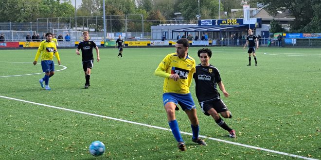 Na rust kon de grensrechter van Dios de 0-2 niet voorkomen. Een vrije trap werd verlengd en Zottoli maakte met zijn hoofd alweer zijn vijfde van het seizoen. Dios leek even van zich af te bijten en veroverde door goed druk zetten op het middenveld de bal en dribbelde het strafschopgebied in tot Hidde Vermaas aan de handrem trok. De snelle en sterke verdediger maakt dit seizoen indruk. De penalty werd matig ingeschoten en/of goed gepareerd door Jari Bakx. Dezelfde Jari kreeg een paar minuten later een indirecte vrije trap tegen vanwege het te lang de bal in zijn handen houden. Is dat een regel? De ruimtes werden groter en daar profiteerde Taba van door de 0-3 binnen te schieten. Ilias Hamdi legde terug op Maxim Perels, die zijn basisplek met een fraai afstandsschot terugbetaalde.