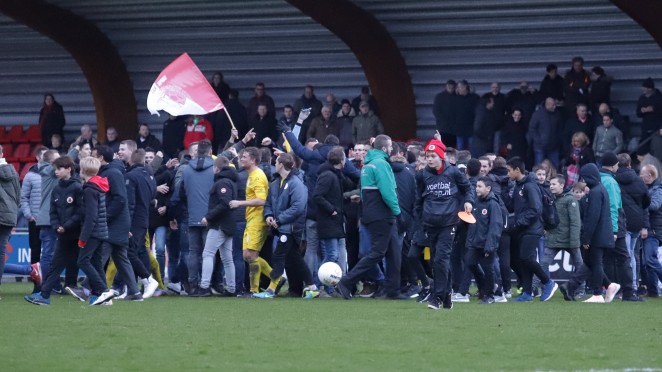 “Iedereen is er doodziek van. Ik ook”, vervolgde de oefenmeester. Zo bleek naar verluidt op de beelden te zien dat de aanleiding voor de 2-3 geen strafschop was. Veel valt er overigens niet meer aan te doen. Door de nederlaag is IJsselmeervogels dichterbij gekomen. De voorsprong bedraagt nu nog twee punten. Volgende week gaat AFC op zondag op bezoek bij Jong Almere City.