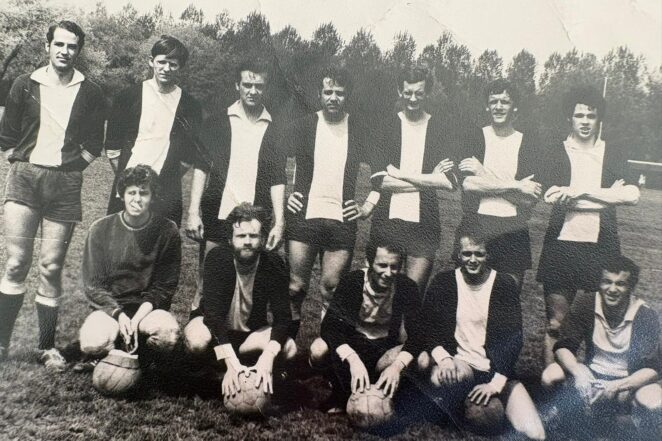 “Maar er was genoeg bier en broodjes kroket,” voegt hij toe. Bij mooi weer werden stoelen naar buiten gesleept. Supporters – familie, kinderen, een enkele vriend- keken vanaf de rand van het veld. Een tribune was er niet. Nooit geweest. En toch was het genoeg.