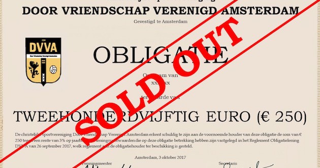 Zaterdag tweedeklasser DVVA heeft in een half jaar tijd 100.000 euro aan obligaties opgehaald voor de verbouwing van de accomodatie.
