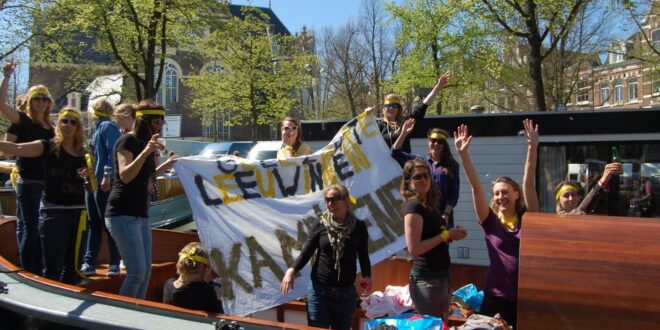 Langs en op de bruggen stonden mensen met spandoeken. Een Amsterdams kampioensfeest in het klein. “Een beetje zoals het EK van 1988,” schatert Judith lachend. “Maar dan op onze eigen manier.”