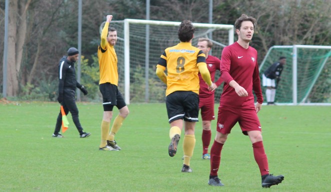 De wind bleef een hoofdrol spelen. Zo werd een schot van Koen van Haaren gedragen door de wind, maar voorkwam Rocha een tweede tegentreffer. Aan de andere kant van het veld kreeg AMVJ ook een paar goede kansen. De grootste was voor Tim Reuvekamp. Vanaf vijf meter voor het doel mikte hij de bal over. Vlak voor rust kreeg de thuisploeg de deksel op de neus voor het missen van deze kansen. Opnieuw zag Rocha er niet goed uit, nu bij een schot van Kevin Scholten. “Wij krijgen vier 100% kansen en zij twee halve kansen, maar je staat toch 0-2 achter”, zei Kumar na afloop.