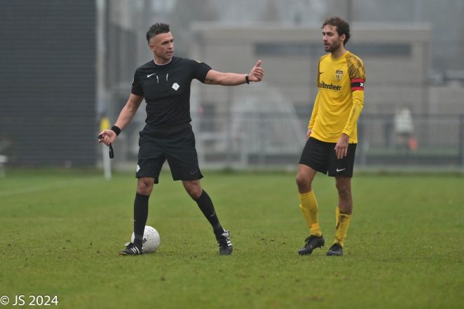 Trainer Hans Schakel was na de wedstrijd blij, maar vooral voor de spelers. “Deze was even nodig.” Op een gegeven moment was ik ook blij met een punt, zodat we toch met een resultaat de winterstop in konden gaan, maar dat die verdwaalde voorzet van Jelle Spanninga er dan in vliegt, is natuurlijk prachtig en vooral voor die gasten. Dat vind ik het allerbelangrijkste. Je merkt op divisie niveau dat je goed kunt spelen, maar dat zegt niets over de tussenstand of de einduitslag en dat zagen wij bij de tegengoal. Dat was hun eerste kans van de wedstrijd. Vorige week speelden wij vijfendertig minuten echt heel goed (tegen AFC’34 red.) en hadden wij volledige controle. Één counter en hij ligt er gelijk in. Dat zijn ook de wetten in de vierde divisie. In deze wedstrijd tegen Hollandia komen wij eigenlijk tegen de verhouding in op achterstand, terwijl wij goed speelden. Gelukkig bleven wij gaan en duels winnen en hebben wij het recht kunnen zetten. Vooraf heb ik gezegd dat we het super goed doen, ondanks de vier nederlagen de afgelopen vier wedstrijden. Ik heb aangegeven dat ze gewoon moeten gaan genieten en alles moeten geven en dat hebben ze gedaan. We gaan met 24 punten de winterstop in en we hebben de meerderheid van onze wedstrijden gewonnen. We spelen in een divisie waar bij elke club alles goed geregeld is. Veel van onze tegenstanders spelen al sinds mensenheugenis in de top van het amateurvoetbal en bij onze club moeten de spelers nog bardiensten draaien, dus ik ben echt trots. Wij spelen dinsdag nog voor de beker en dan beginnen wij op 4 januari weer met de traditionele nieuwjaarswedstrijd tegen JOS Watergraafsmeer. Ons trainingskamp hebben wij even verplaatst naar de voorjaarsvakantie. Woensdag hebben wij een kerstdiner op de club, dat hebben de jongens ook zelf georganiseerd.”