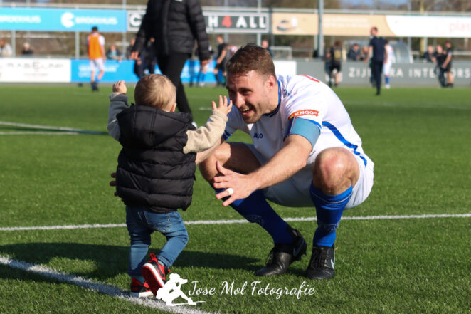 Na afloop temperde trainer-coach Berry Smit de euforie. “We blijven nuchter. Nog twee potjes en we zijn veilig,” aldus de oefenmeester die Dylan van Os, vorig seizoen nog actief bij IVV in Landsmeer, met zijn twee treffers een belangrijke bijdrage zag leveren aan de overwinning.