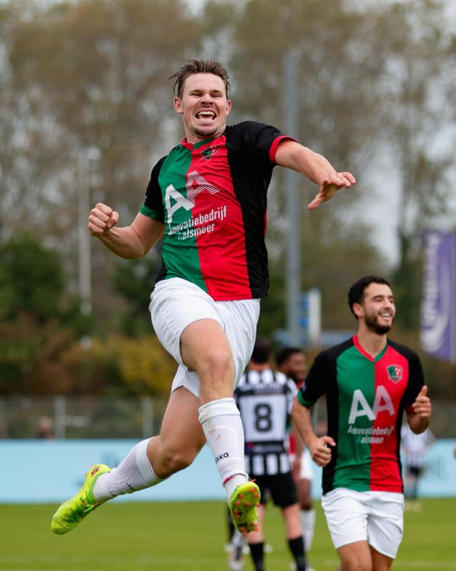 Na rust tekende Luke Vahle nog voor zijn eerste van het seizoen. Hij schoot de bal van buiten de zestien schitterend in de linkerkruising. De spits had ondanks zijn goede veldspel, het doel nog niet getroffen dit seizoen en vierde het doelpunt alsof er een last van zijn schouders viel. Hierna waren er aan beide kanten nog wat kansen, maar vielen er geen doelpunten meer en zo kon Aalsmeer opnieuw drie punten bijschrijven. Zo komt de ploeg van Erwin Tump op dertien punten uit zes wedstrijden en hoeft het alleen titelfavoriet Jos Watergraafsmeer nog voor zich te dulden. Aan de overige uitslagen te zien, ligt het allemaal dicht bij elkaar en volgende week wacht de volgende uitdaging met het nog ongeslagen AFC ’34 voor de Aalsmeerders. Kijk hier voor alle uitslagen, de stand en het programma in de Vierde divisie