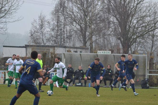 Op eenderde van de wedstrijd kwam HBOK verdiend op voorsprong. Een voorzet vanaf de rechterkant werd door Max Sajet doeltreffend afgerond: 1-0. Gezien de mogelijkheden in het eerste half uur had de marge groter kunnen zijn, maar Veltman hield zijn ploeg in de wedstrijd.