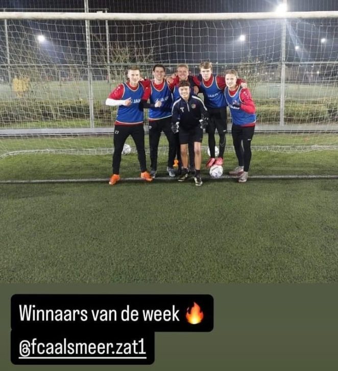 Voor Max (15) van FC Aalsmeer O17 was de winterstop anders. Een lichte blessure dwong hem om gas terug te nemen. “Dat was lastig. Je wilt door, maar je moet daarin slim zijn.” Na begeleiding van de fysiotherapeut is hij bijna volledig terug. De eerste lichtere trainingen voelen goed en met een oefenwedstrijd op komst aankomende zaterdag komt het ritme langzaam terug. Het hoogtepunt van de afgelopen weken? “Een uitnodiging om mee te trainen met het eerste elftal kort voor de winterstop. Dat was echt superleuk. Ik kende eigenlijk niemand, allemaal volwassen spelers en al die jongens die daar rondlopen kunnen echt wel een balletje trappen. Ze waren heel positief naar mij.”
