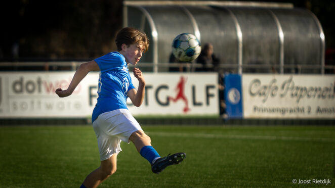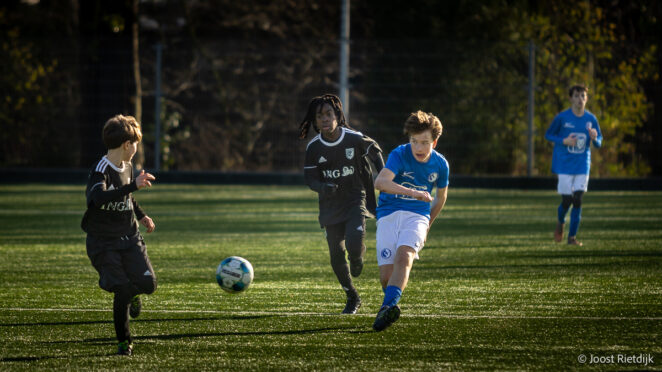 Dat Julio direct weer minuten kon maken, stemt hem tevreden. “Na de blessure is dat best goed toch?” Buiten het voetbal om blijft zijn leven overzichtelijk. “Ik doe meestal gewoon slapen, school, voetbal, gym, slapen, school.” Met de vakantie in aantocht kijkt hij uit naar wat rust. “Ik denk dat dat me goed doet,” zegt hij. Even opladen. Want hoewel hij het nuchter brengt, vraagt een seizoen op niveau inzet en discipline. Komende zaterdag sluit hij mogelijk opnieuw aan bij Onder 16. “Ik hoop dat ik ook daar mee mag doen. Maar mijn eigen team heeft ook een competitiewedstrijd. Dat is achter elkaar.”