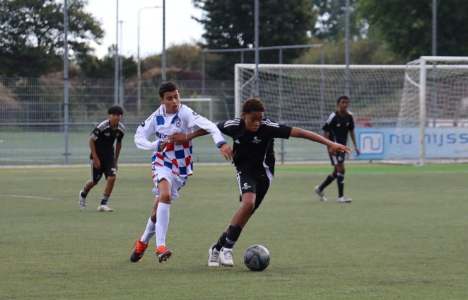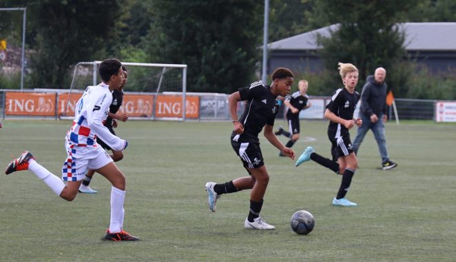 Qua resultaten gaat het ook goed. ,,Absoluut”, klinkt het bevestigend. ,,Tegen DRC O15 wonnen we met 1-8. Ik heb die wedstrijd vier assists gegeven. Afgelopen week wonnen we met 9-0 van asv De Dijk O15. Ik heb in die wedstrijd zelf drie keer gescoord en drie keer een assist gegeven. Daarna mocht ik mee met de O16 tegen FC Breukelen O16; ook die wedstrijd wonnen wij. Als invaller speelde ik als rechterspits en scoorde ik één keer. Bij de O16 merk ik vooral dat het veel fysieker spel is. Ik ben niet zo heel groot, bij de O15 gaat dat prima. Daar kom ik fysiek goed mee. Ik moet het van mijn snelheid en technische vaardigheden hebben.”