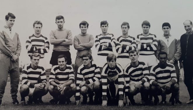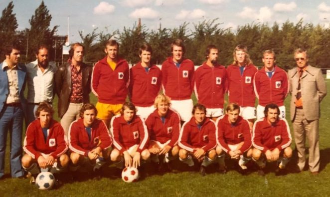 De anekdotes komen vanzelf als het over de derde helft gaat. Maar Jan is geen typische kantineheld. Hij zegt het zelf: “Ik ben geen drinker. Ik heb nooit gedronken.” Pas later, op hogere leeftijd, komt er af en toe een pilsje of wijntje. Als speler: niet. Zijn bijnaam bij sommige verenigingen was “Spaatje” – “ik dronk altijd Spa.” Daarbij hoort een tweede detail dat veel zegt over hoe hij zichzelf zag: “Ik ben ook een ijdeltuit. Als ik ging spelen, mijn haar moest altijd goed zitten.” Kammetje of spaatje. Het is een bijnaam en als je al lang genoeg meeloopt gaan zulke details traditie worden. De keer dat hij echt “het voortouw” moest nemen in de kantine? “Dat was bij Aalsmeer, met het clublied. Bram Landzaat (oud-trainer en speler, inmiddels overleden, red.) had een clublied geschreven en opgenomen in een opnamestudio in Hilversum.” Jan zong de solo, omdat men vond dat hij wel goed kon zingen. Hij vertelt het met een mengeling van nuchterheid en plezier: “Dat was wel grappig.” Zo ontstaat het portret van een man die niet de gangmaker is, maar wel deel uitmaakt van de verhalen. Iemand die het voetbal van binnenuit kent: het ritueel, de humor.
