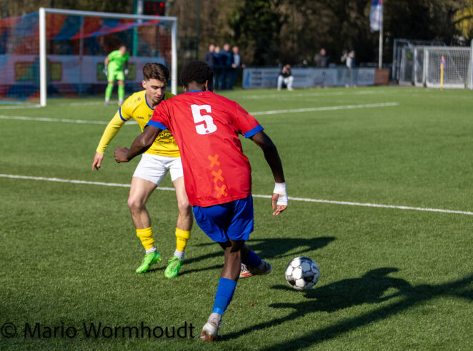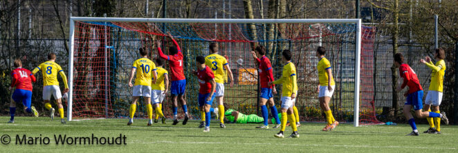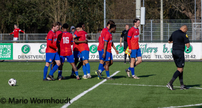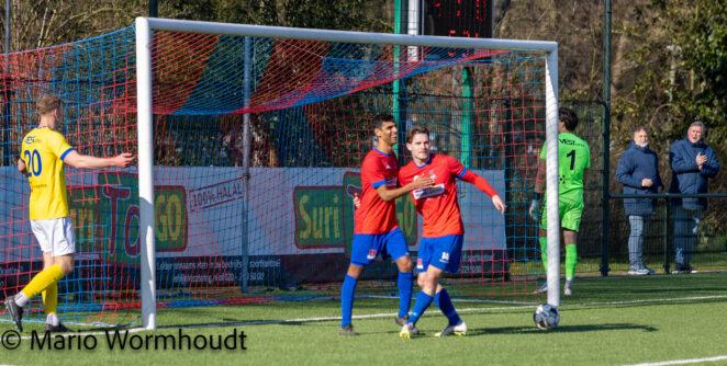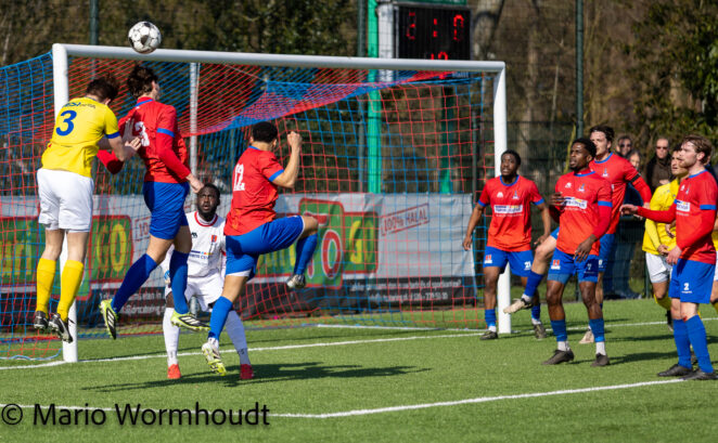 Waar vorige week tegen Ter Leede in de eerste helft een tiental corners geen resultaat opleverde, was het ditmaal opnieuw raak vlak voor rust. Een corner van Randy Schiltmeijer werd in eerste instantie nog tegen de lat gewerkt, maar in tweede instantie – na goed terugleggen van Max Versteeg – door Martin Campbell binnen gekopt: 3-0.