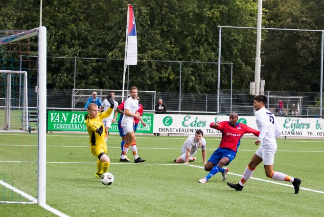 Al heel vroeg in de wedstrijd kwamen de Amsterdammers op een 1-0 voorsprong. Een wat makkelijk gegeven penalty vormde geen enkel probleem voor Raymond Fafiani: 1-0. Na ruim een kwartier wist Be Quick 1887 echter terug te komen in de wedstrijd. Youri ter Arkel haalde vanaf 30 meter verwoestend uit en liet doelman Colby Harmon kansloos.