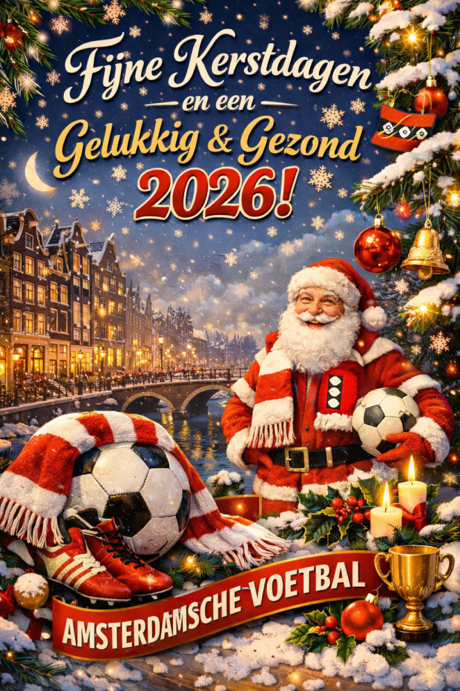 Het Amsterdamsche Voetbal wenst u allen fijne feestdagen en een gelukkig, sportief en gezond nieuwjaar 2026! Team 'Het Amsterdamsche Voetbal´