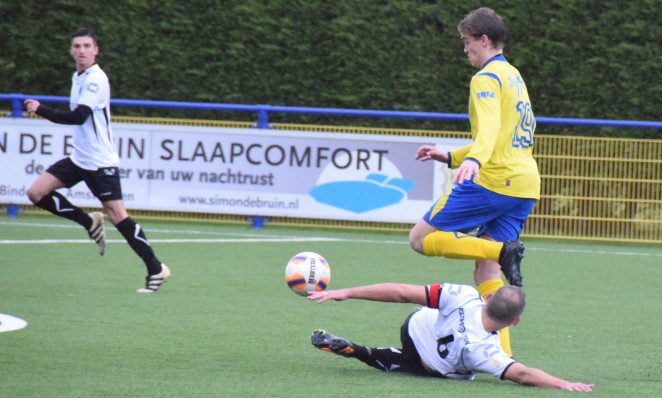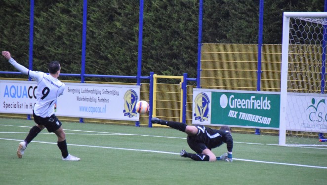 Dat wierp in de tweede helft haar vruchten af. Na een onderschepping op het middenveld speelde Damien de Vegt twee tegenstanders uit om daarna met zijn linkerbeen de bal in de rechterbovenhoek te krullen: 1-0. Het antwoord van AGB volgde vrij snel daarna. De gelijkmaker viel letterlijk uit de lucht. Op schitterende wijze bracht Sergio Comvalius de Amsterdammers op gelijke hoogte: 1-1.