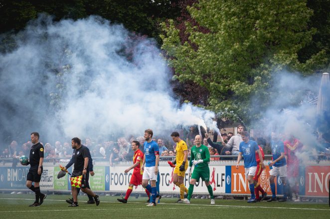 Lijkt het ‘AFC scenario’ als mogelijk gevaar niet op de loer? ,,We mogen nu niet meer promoveren. Wij weten dat. Onze eerste doelstelling was om de zondag weer in de lift te krijgen. Er staat nu écht wat. Het is stabiel. Met vooral WV-jongens.”