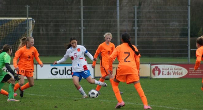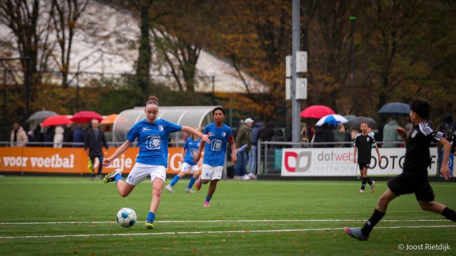 Wat ze hoopt voor de toekomst van het meisjes- en vrouwenvoetbal? “Dat mensen stoppen met vooroordelen. Niet steeds maar vergelijken met mannenvoetbal, maar echt zelf gaan kijken.” Haar boodschap aan andere meiden is genuanceerd. “Luister naar wat jij wilt. Wil je je ontwikkelen via jongensvoetbal, doe dat. Voel je je fijn bij meiden en heb je daar plezier, dan is dat ook goed.” Ze weet ook: sfeer doet veel. “Bij meiden is het bijna altijd positief. Nooit boos op elkaar. Dat is soms echt anders dan bij jongens.”