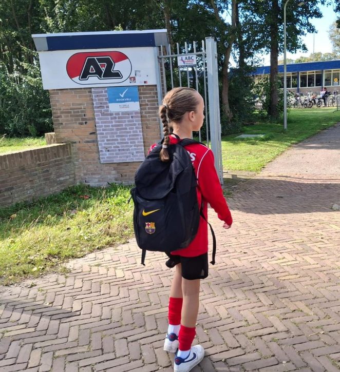 Naast Sporting Martinus traint Olivia ook bij AZ. “Ik wil dáár verder komen. En ook bij de KNVB.” Haar ultieme droom? “Bij FC Barcelona spelen. En het Nederlands elftal.” Dat ze haar drukke voetballeven kan combineren met school, is geen toeval. Via AmstelveenSport – een regeling die sporttalenten ondersteunt – mag ze eerder van school om te trainen in Alkmaar, mits haar schoolresultaten op peil blijven. Het Keizer Karel College werkt daarin mee. “We krijgen ook bijeenkomsten over voeding, slaap en herstel. Dat helpt.” Het leven van een talent vraagt offers. “Na school ga ik meteen naar training. Daarna eten, huiswerk maken. Sommige dagen kan ik niet afspreken met vriendinnen.” Soms baalt ze. “Maar achteraf ben ik vaak blij dat ik toch naar de training ben gegaan. Je moet keuzes maken.”