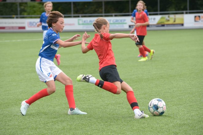 Olivia (12). Linksvoor, maar rechtsbenig. Ambitieus. En bovenal: niet bang om haar plek op te eisen. “Bij de jongens leer ik het meeste”