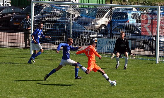 Maar ook voor Weesp zijn er wat mogelijkheden. In de 29e minuut een hoekschop. Binnen de zestien meter maakt Abcoude hands. De bal gaat op de stip. Wouter Spanjerberg heeft met de penalty geen moeite en schiet Weesp naar een 1-0 voorsprong.