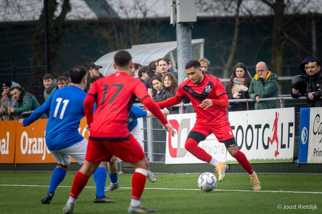 Het leidde tot een spervuur aan kansen. Diego Van de Bunt Huijgen kopte vlot richting doel, maar vond keeper Gennaro Liklikwatil op zijn weg. Lukas Noppert raakte de paal, net als Midas Ploem Kempkes. Kans na kans stapelde zich op, maar de bal wilde er simpelweg niet in. Zelfs bij de spits van Saenden, Jordi Wigman, was de frustratie zichtbaar. Elke poging om door te stappen of druk te zetten werd soepel uitgespeeld, waardoor Saenden steeds verder achteruit werd gedrukt.