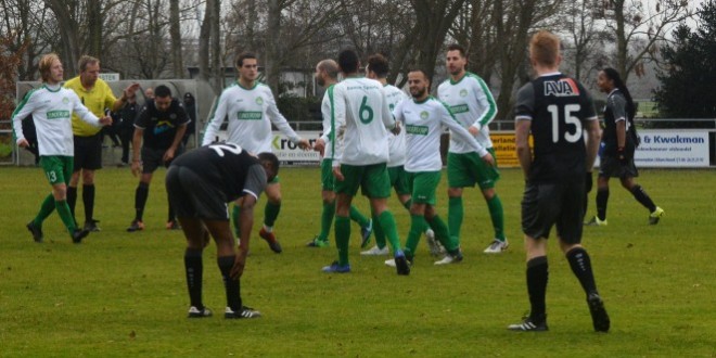 In de eerste helft waren beide teams gelijkwaardig aan elkaar. Allebei waren ze slordig in de passing – daar speelde de wind een rol in – en de mogelijkheden die ze kregen, eindigden over of naast. Toch lukte het HBOK om na een kwartier de leiding te pakken. Na goed terugleggen kon Angelo Groen eenvoudig de 1-0 binnen schuiven. In de 32ste minuut had Dani Braspenning de 2-0 op zijn schoen, maar werd zijn strafschop gepakt door doelman Mike Oudshoorn.