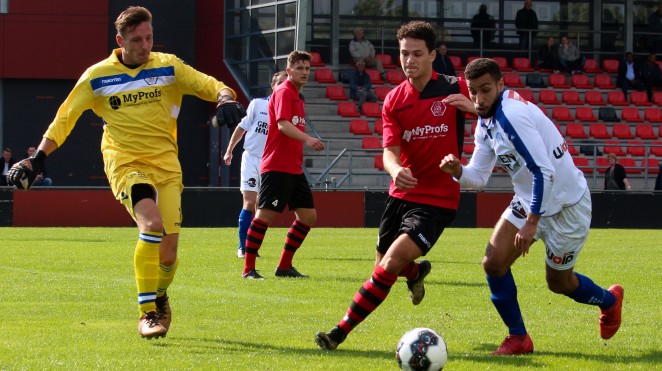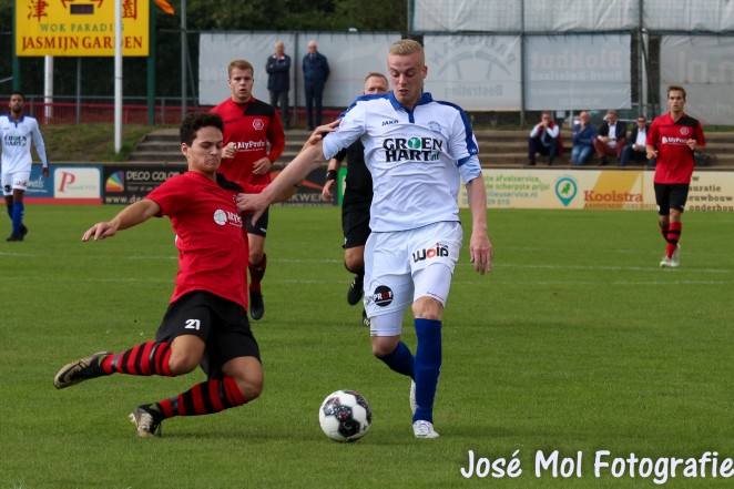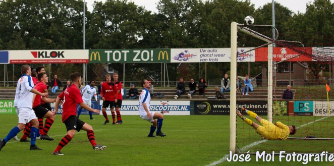 Purmersteijn-trainer Martin van Ophuizen had zijn opstelling niet gewijzigd na de eclatante 6-1 overwinning op RKHVV van vorige week. Hoewel Purmersteijn in de eerste helft het meeste balbezit had, wist het weinig kansen te creëren. Het was dan ook de gastheer die in de zesde minuut de eerste kans kreeg op de openingstreffer, maar doelman Richard de Groot wist de inzet van Pelle de Vries fraai te keren. Enkele minuten later was het wederom De Groot die een kopbal van Ids Hannema onschadelijk maakte.