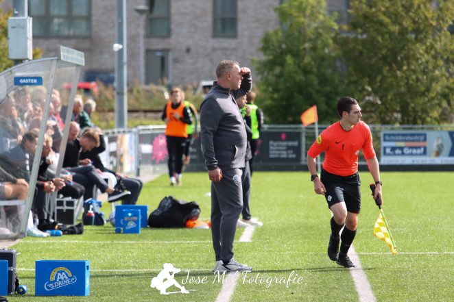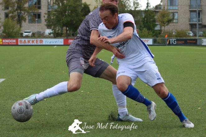 De coach heeft een heel goede start met zijn team, maar dat komt niet uit de lucht vallen. ,,We weten wat we willen en de jongens hebben een persoonlijk ’takenpakket’ meegekregen. We hebben een datum in ons hoofd zitten hoe lang dat mag duren. Maar vooralsnog denk ik dat we onze doelstelling wat dat betreft ruimschoots gaan halen. We maken enorme stappen en we doen mee in de competitie. We stonden afgelopen dinsdag in de gietende regen tot 21.30 uur op het veld, dan is het ‘satisfying’ (lees: bevredigend), zoals ze dat bij Liverpool zeggen, dat deze arbeid ook beloond wordt. Hier doen we het voor en zo goed kunnen wij dus zijn. We hebben het heel erg lang volgehouden. Pas op het allerlaatst werd het pas iets lastiger.” De eindstand werd bepaald in de blessuretijd door een doelpunt van Chris Hoogervorst.