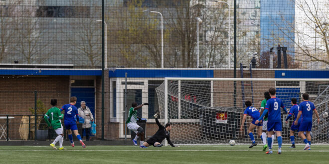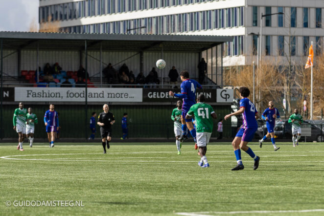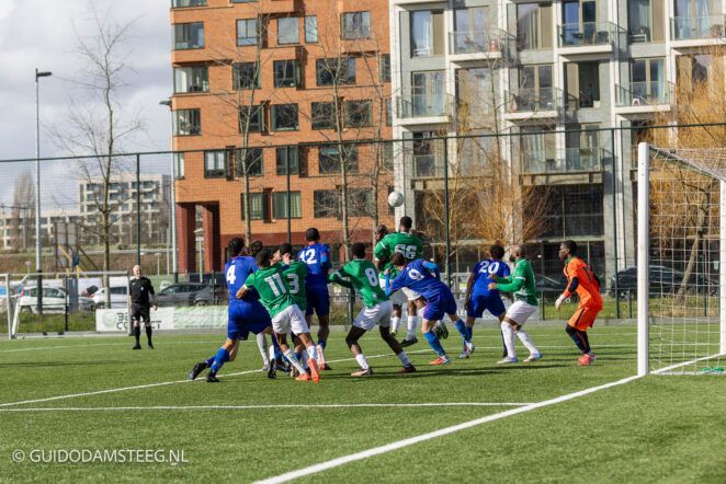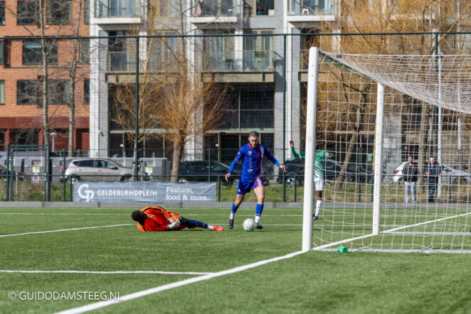 Halverwege de eerste helft viel het eerste doelpunt aan de overzijde van het veld. Na een goed uitgevoerde combinatie was het Leroy George die vanaf de rechterkant de doelman Parsa Rafia van Buitenveldert verraste met een prachtig schot in de lange hoek: 0–1.