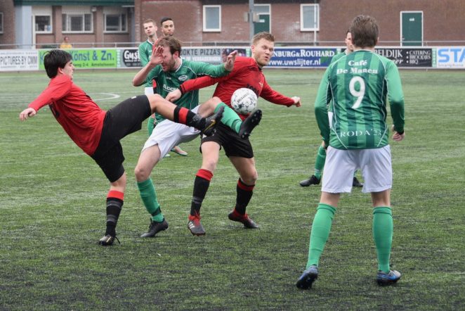 Toch bleek de wedstrijd allerminst gespeeld. Nog geen 10 minuten later profiteerde RODA’s Thomas Zuiverloon van een misverstand in de Wartburgia-defensie en stond de 1-2 op het bord. Een paar minuten later had het zelfs gelijk moeten staan. Na hands aan de kant van Wartburgia benutte Pim Steij de gegeven penalty echter niet, maar schoot keihard op de lat. Vlak erna was een indirecte vrije trap reden voor alle hens aan dek voor de bezoekers, maar ook dit liep met een sisser af. Voor rust kreeg Wartburgia nog twee uitgespeelde kansen, maar die bleken niet besteed aan de voorhoede.