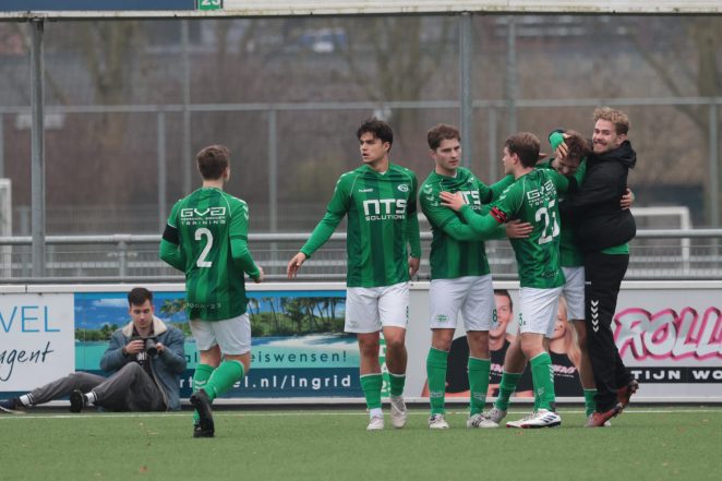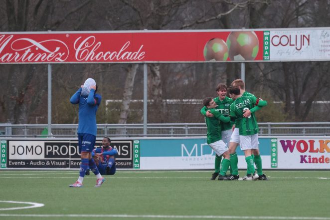 Het ontbrak RODA ’23 aan écht grote kansen, tot de vijenveertigste minuut. Vlak voordat de ploegen aan de thee gingen, kopte verdediger Viggo Peters RODA ’23 op voorsprong. Dat kon RODA ’23 goed gebruiken en zo gingen de groen-witten met een fijn gevoel de kleedkamers in.