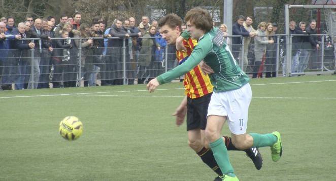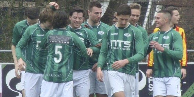 Zo knetterend als het eerste bedrijf was, zo matig was het na de theepauze. RODA’23 liet Martinus het spel maken en meer dan een paar lange ballen op de ingevallen spits Niek Koning konden zij niet uitrichten. Wismeijer was op weg naar de aansluitingstreffer, alleen werd hij twijfelachtig afgevlagd wegens buitenspel. Aan de andere kant van het veld stond de lat een derde doelpunt van Plemper in de weg.