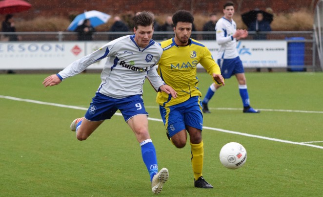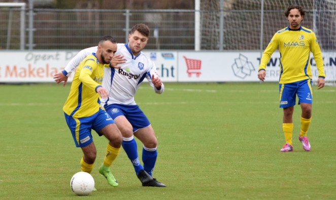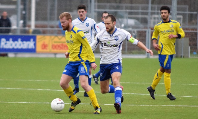 Terwijl de tijd aan het tikken was, hield Wolf – met een 1-1 stand op het scorebord – nog altijd vertrouwen in een goede afloop. “We waren de hele tijd voor het doel aan het drukken, een paar scrimmages. Dan zit het ook een keertje mee”, blikte hij terug. Diep in blessuretijd kapte de ingevallen linksbuiten Moad Tissoudali zijn directe tegenstander uit, legde de bal over de Hillegomse verdediging en Rodney Smorenberg kon vervolgens de bevrijdende 1-2 binnen schieten.